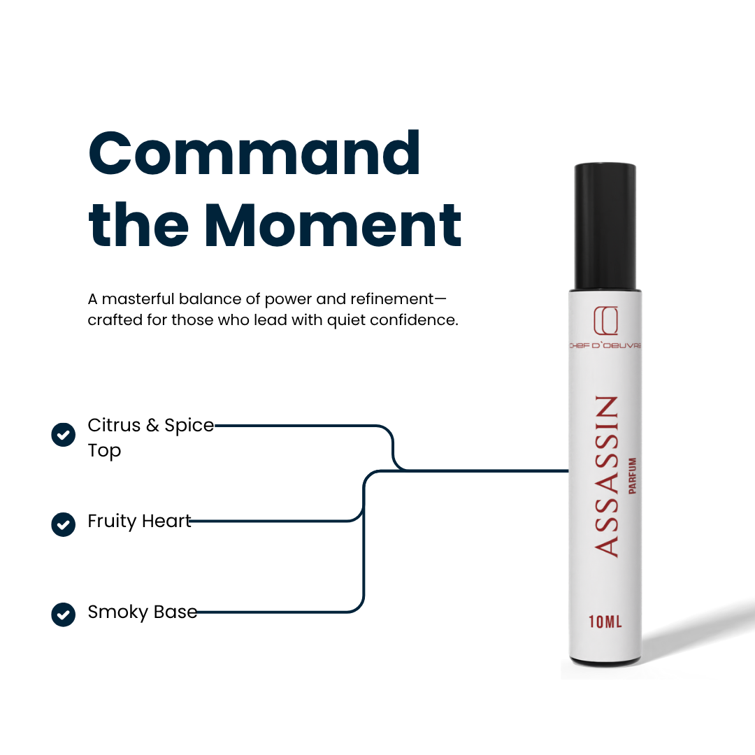 Assassin opens with zesty bergamot, black currant, apple, and lemon. Pineapple, patchouli, and jasmine make up the heart, while a smoky base of birch, oak moss, amber, and ambroxan ensures a lasting and memorable impression.