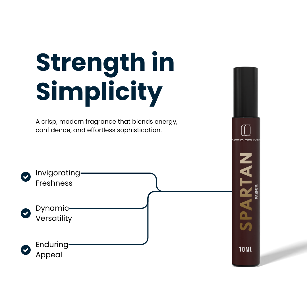 Spartan opens with bright Calabrian bergamot followed by spicy Sichuan pepper, lavender, star anise, and nutmeg. The journey concludes on a soft base of ambroxan and vanilla.